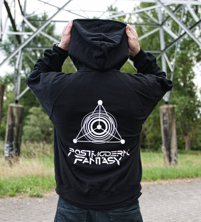 Schwarzer Zipper aus Mischgewebe (mind. 60 % Baumwolle) mit weißem Druck zum Song „Invincible“. Auf der Vorderseite befindet sich links auf Brusthöhe das Hasen-Motiv mit dem Schriftzug „INVINCIBLE“. Die Rückseite zeigt das Postmodern-Fantasy-Logo mit Schriftzug in kräftigem Weiß. Jede Bestellung wird per Hand bedruckt, daher können leichte Abweichungen in Farbe und Ausführung auftreten. Der Zipper ist unisex geschnitten, angenehm weich und verfügt über Kapuze sowie Kängurutaschen.